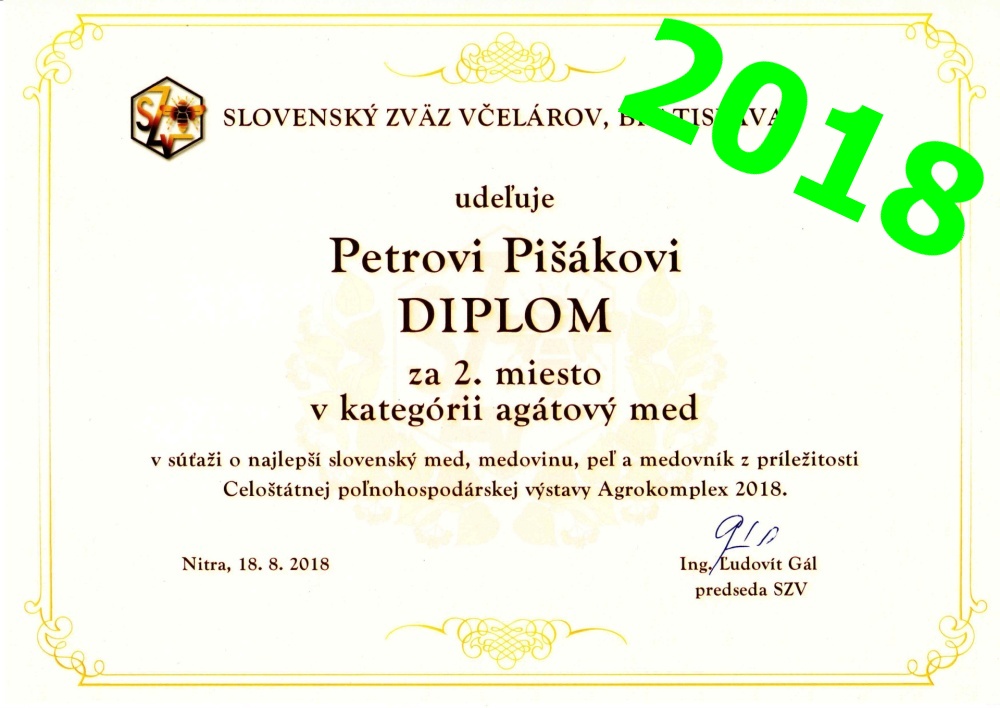 V minulosti tiež náš agátový včelí med získal na celoslovenskej súťaži v roku 2018 2. miesto, viac info na linku TU , a v roku 2020 opäť 2 . miesto viac info na linku TU