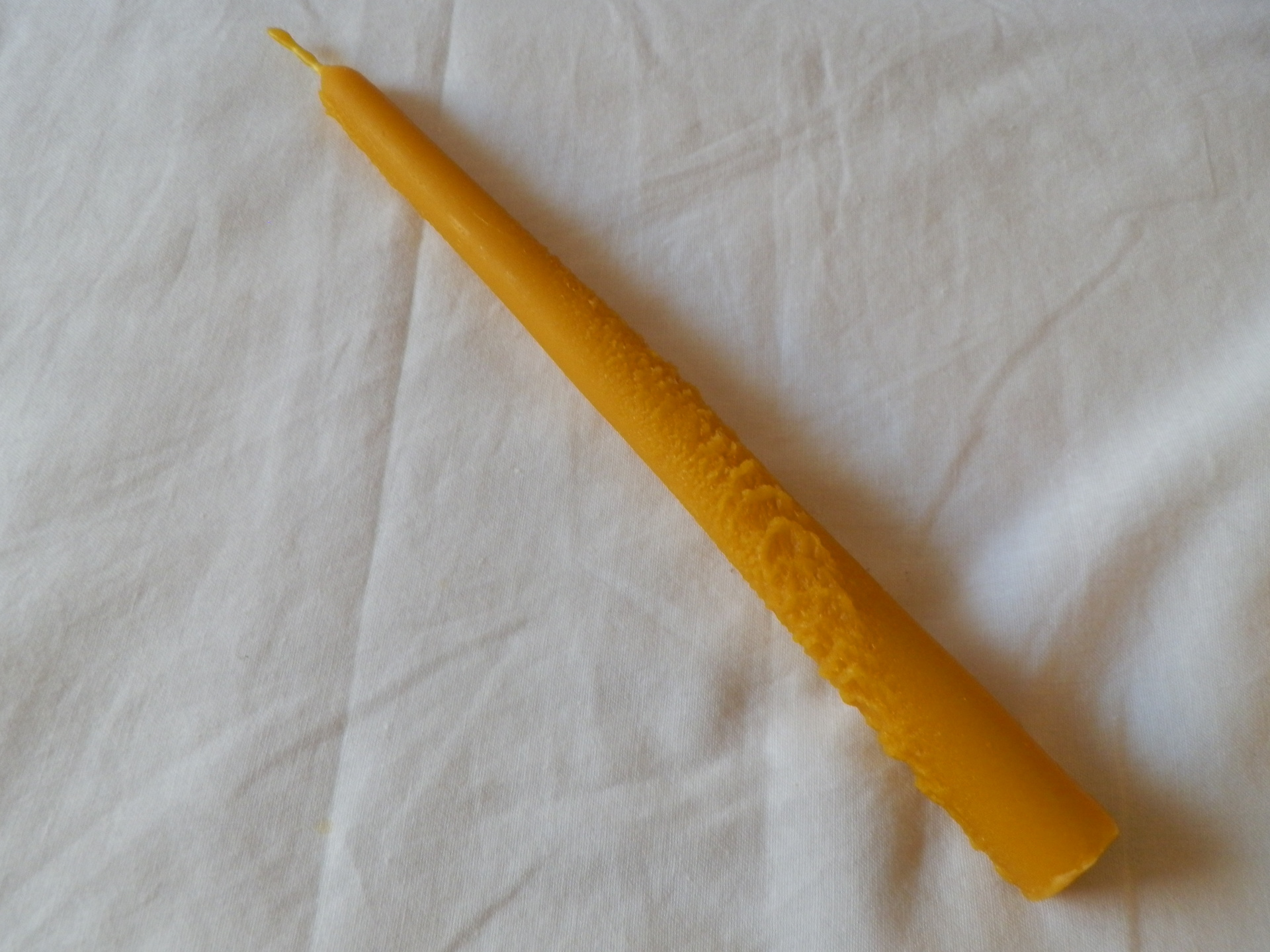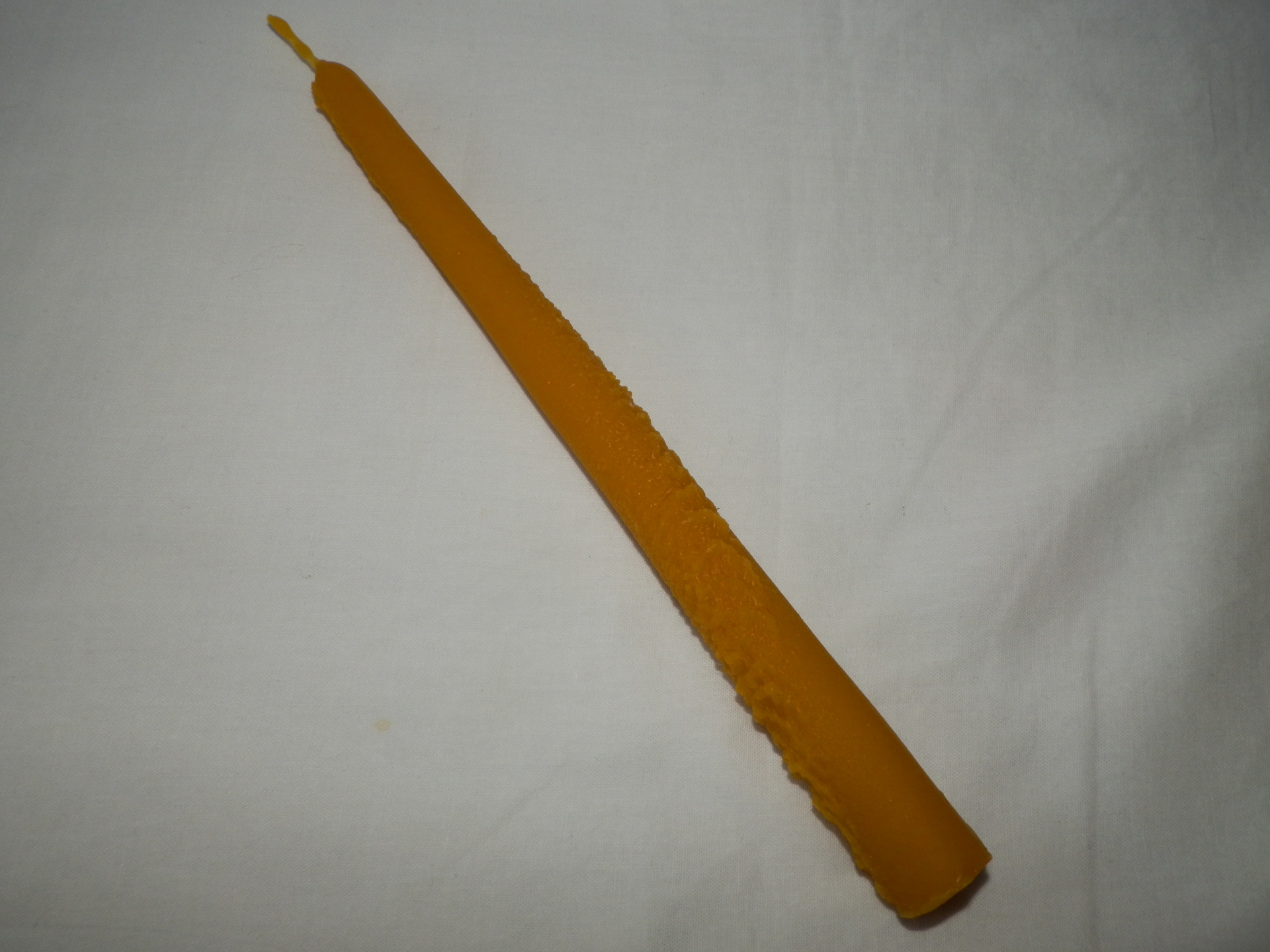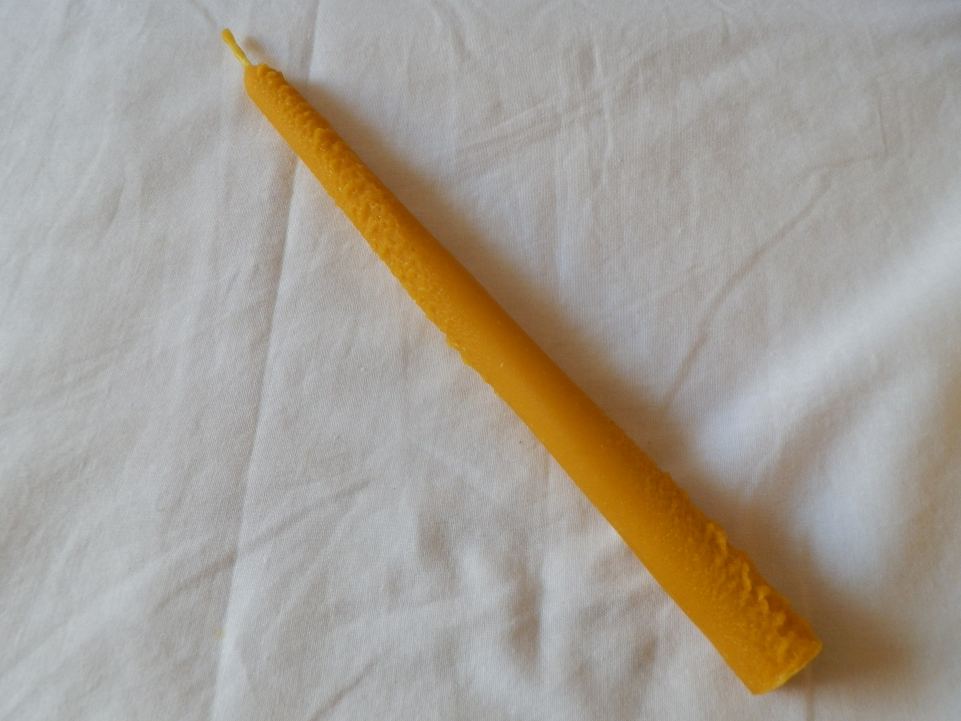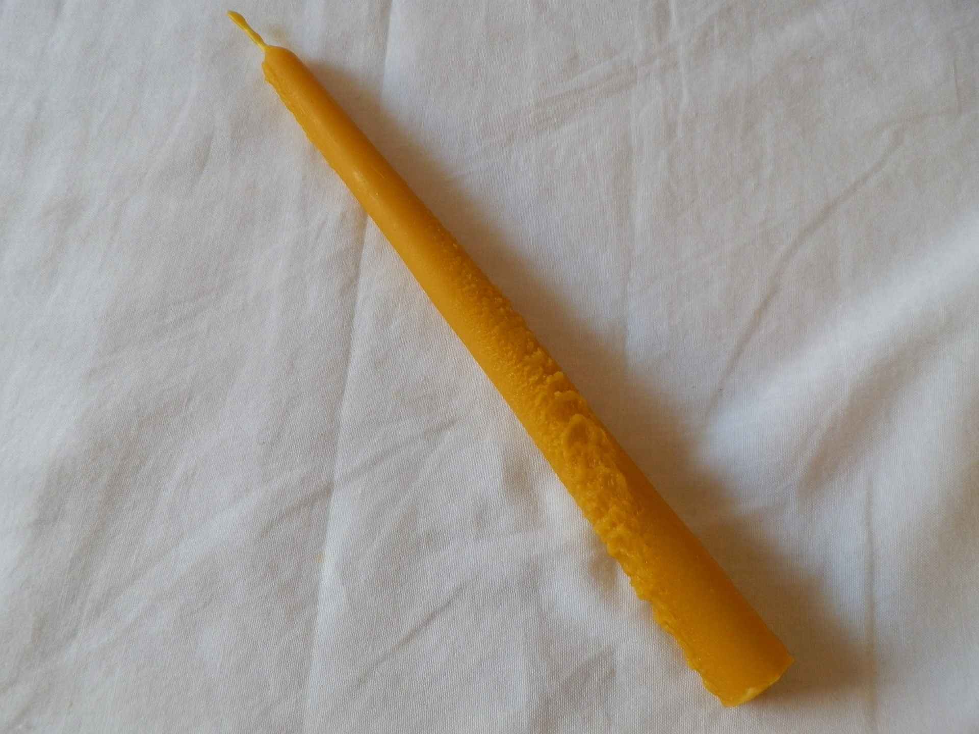 Farba sviečky sa môže oproti fotke mierne líšiť, farba sviečky kopíruje rôzne odtiene prírodného včelieho vosku, ktorý nebol chemicky čistený ani do neho pridávaná žiadna vôňa alebo farba.