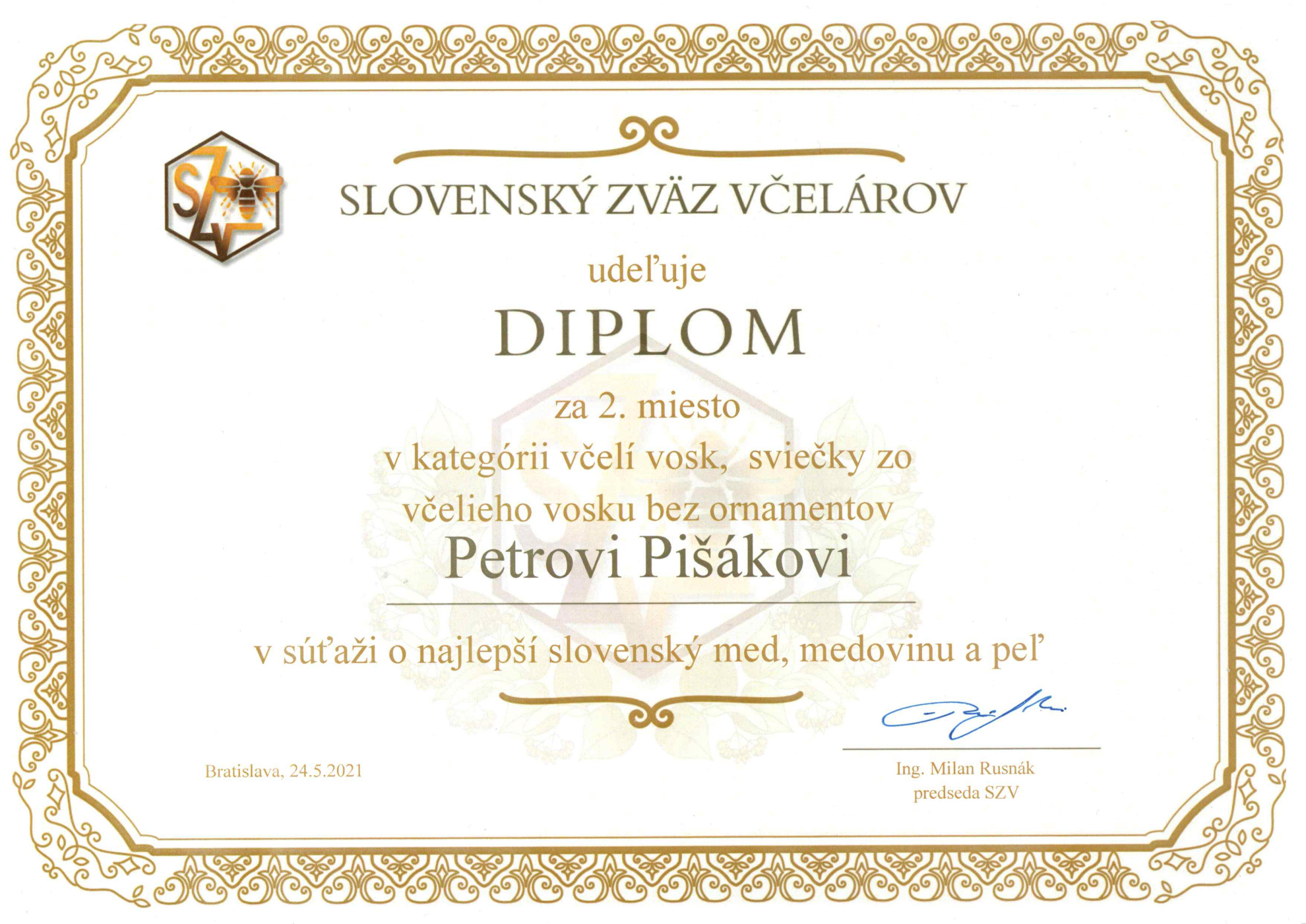 Naše voskové sviečky získal v súťaži o najlepšie voskové sviečky na Slovensku v roku 2023 organizovaný Slovenským zväzom včelárov (SZV) v kategórii včelí vosk 2. miesto a tiež 3. miesto, viac info na linku TU a tiež TU