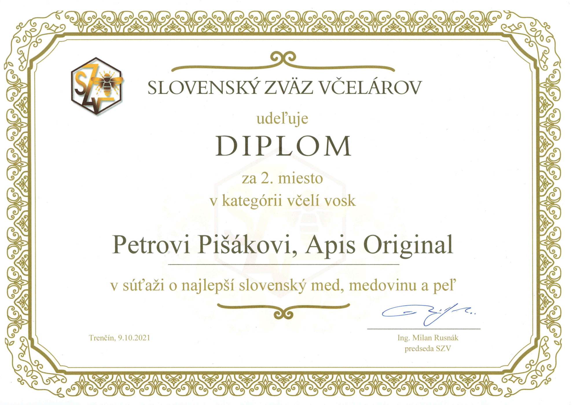 Výrobca: Peter Pišák – Apis Original, Boženy Němcovej 51, 990 01 Veľký Krtíš, Slovenská republika